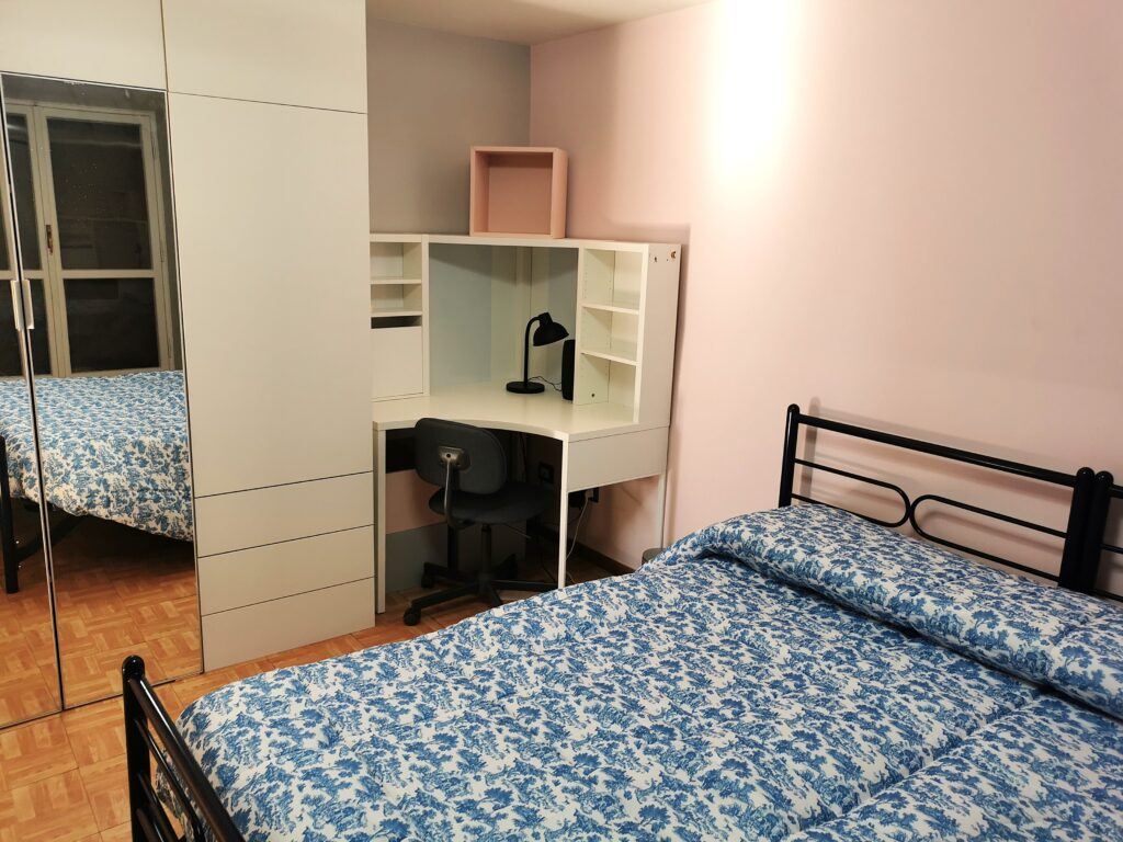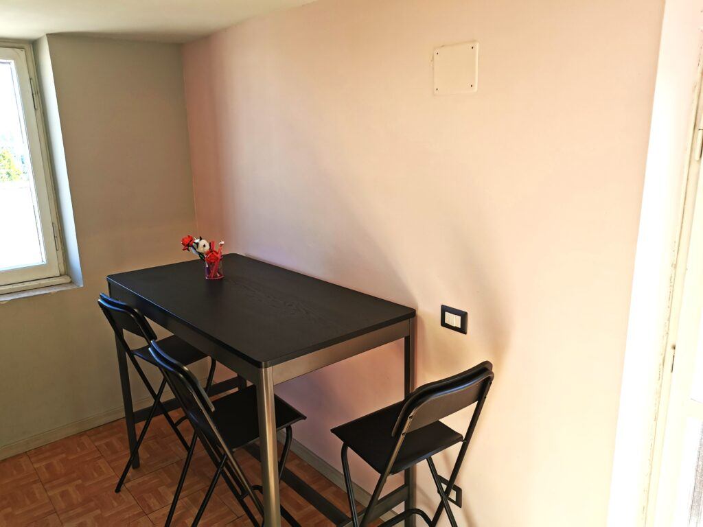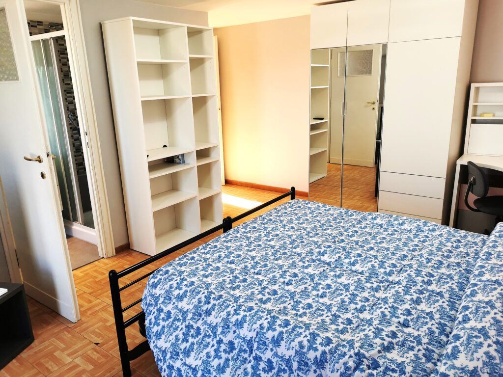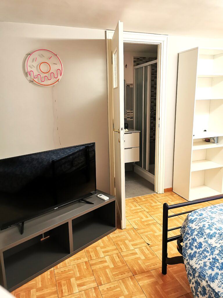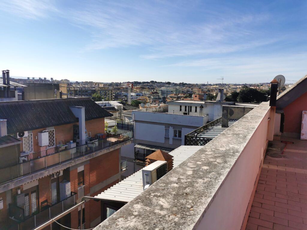 Dall’ingresso si accede alla cucina abitabile con piano cottura a induzione, completa di frigorifero, forno elettrico, forno a micronde, lavatrice – camera da letto matrimoniale con armadio guardaroba, scrittoio, mobiletto con televisione – bagno con ampio box doccia – grande terrazza che affaccia verso i colli tiburtini – zone molto ben collegata al centro da diverse linee di autobus – a pochi passi ci sono la fermata LIBIA della metro, linea B, e la stazione FS Nomentana con collegamento diretto all’Aeroporto di Fiumicino – quartiere residenziale ricco di esercizi commerciali a supermercati, ampia disponibilità di locali ristorazione e pizzerie.