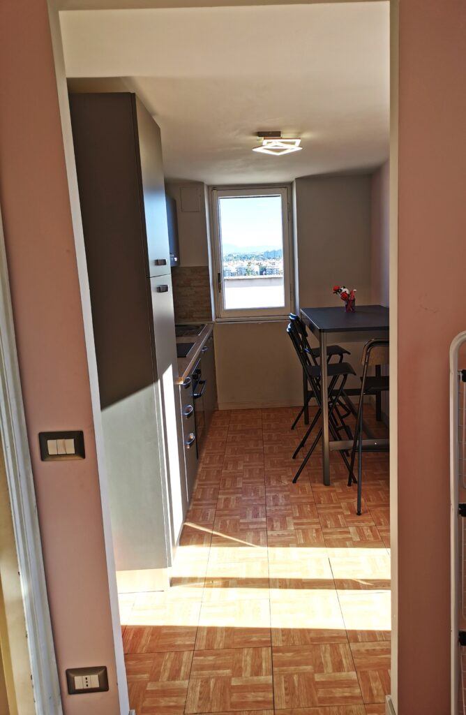 Piccolo e luminoso appartamento all’ultimo piano con grande terrazza, comodo e silenzioso.