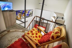 Nelle immediate vicinanze della centralissima Piazza Indipendenza affittiamo delizioso miniappartamento con soppalco, completamente attrezzato, comodo e tranquillo, situato al piano terra nel cortile interno di un elegante edificio anni ’30. Composto da angolo cottura, zona con letto matrimoniale e bagno con box doccia sotto il soppalco. Zona soggiorno sopra il soppalco con altezza abitabile. Arredato con mobili su misura per sfruttare al meglio lo spazio. Zona molto ben collegata, a due passi dalla Stazione Metro Castro Pretorio e dalla Stazione Termini, a pochi minuti a piedi da Piazza della Repubblica e Via Nazionale. Contatto con incaricato Agenzia – +39 331 408 1784
