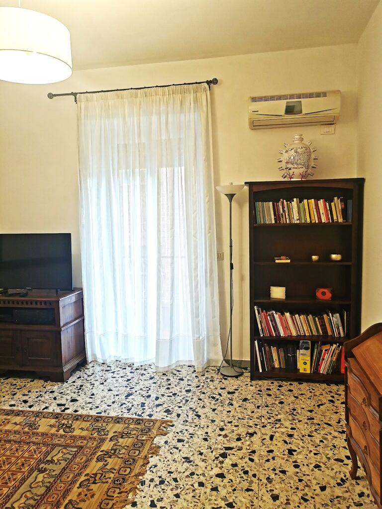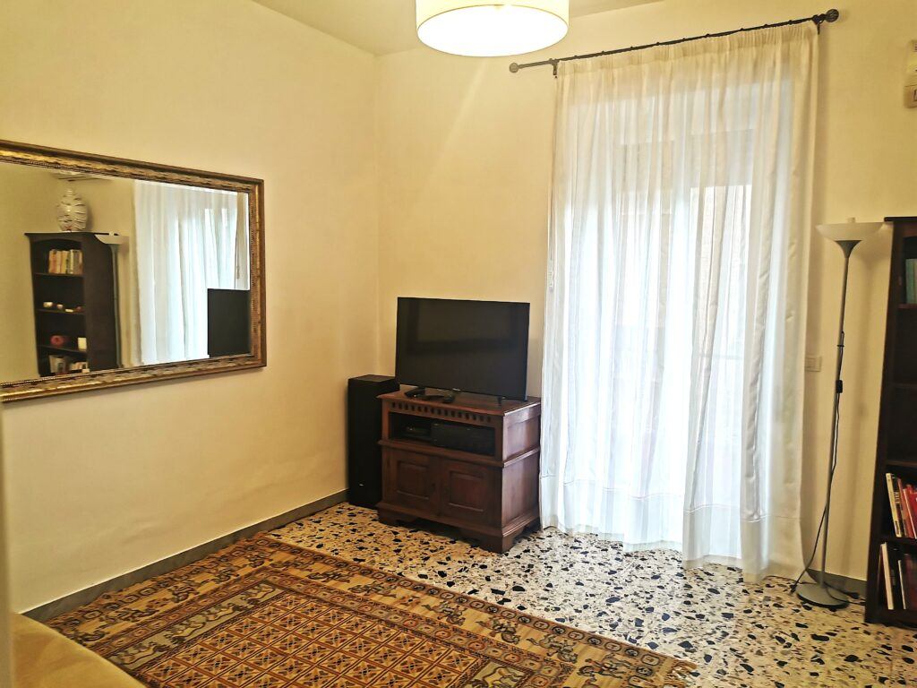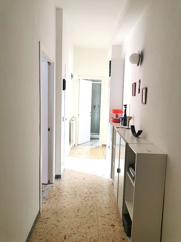 Composto da corridoio/ingresso, un soggiorno con divano letto e balcone, camera da letto matrimoniale con grande armadio guardaroba, bagno con box doccia, cucina abitabile completa di elettrodomestici e balcone.