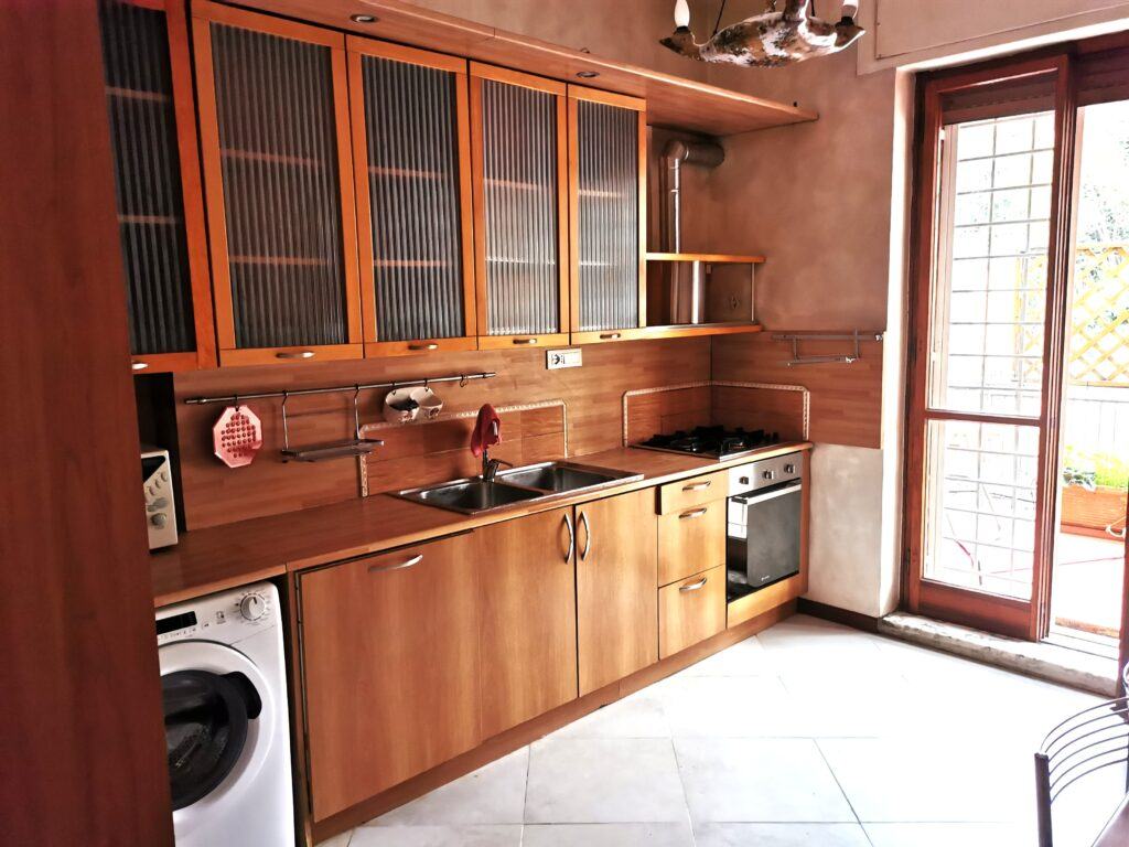 Elegante appartamento all’ultimo piano di una palazzina nel tratto iniziale di Via Gregorio VII. Salone con zona salotto e tavolo pranzo – camera da letto matrimoniale – camera da letto singola – bagno padronale con vasca – secondo bagno con box doccia – grande cucina abitabile – terrazzo che fira intorno a tutto l’appartamento, vista panoramica – Via Gregorio VII è servita da diverse linee di mezzi pubblici, a pochi minuti c’è la Stazione FS SanPietro. Con pochi minuti a piedi si raggiunge Piazza San Pietro e la Città del Vaticano.
