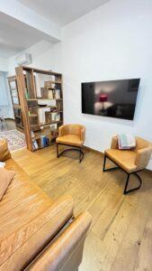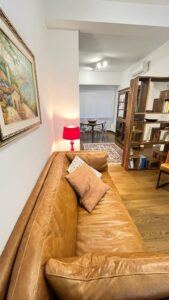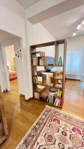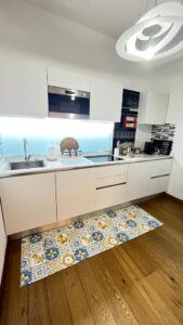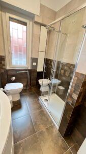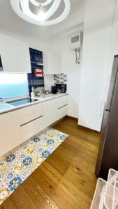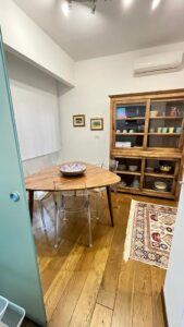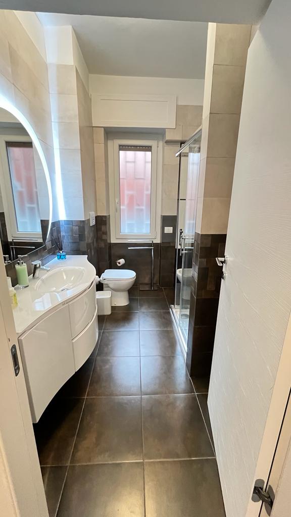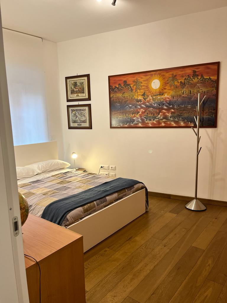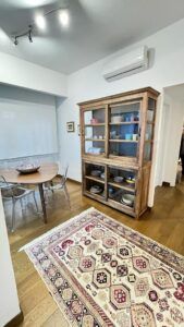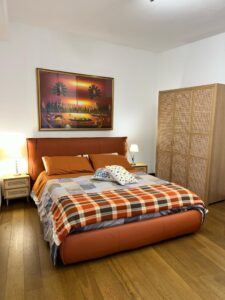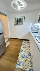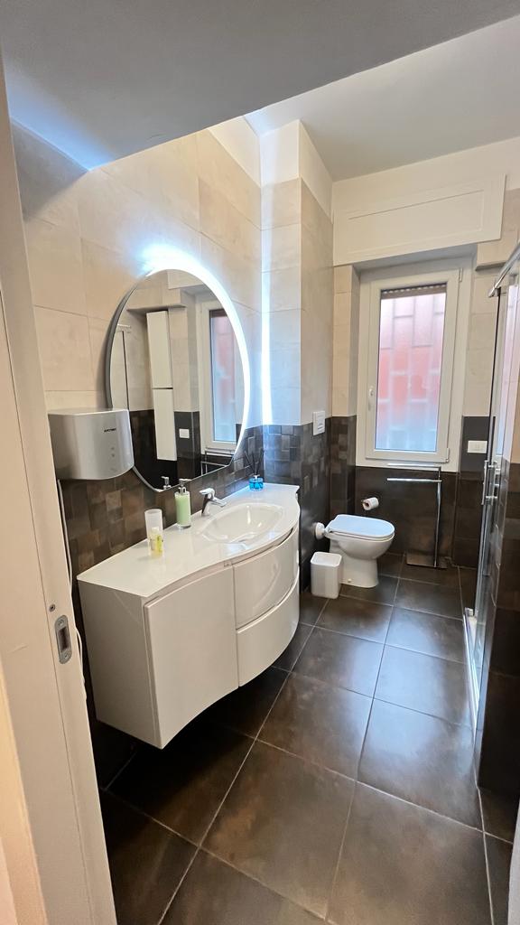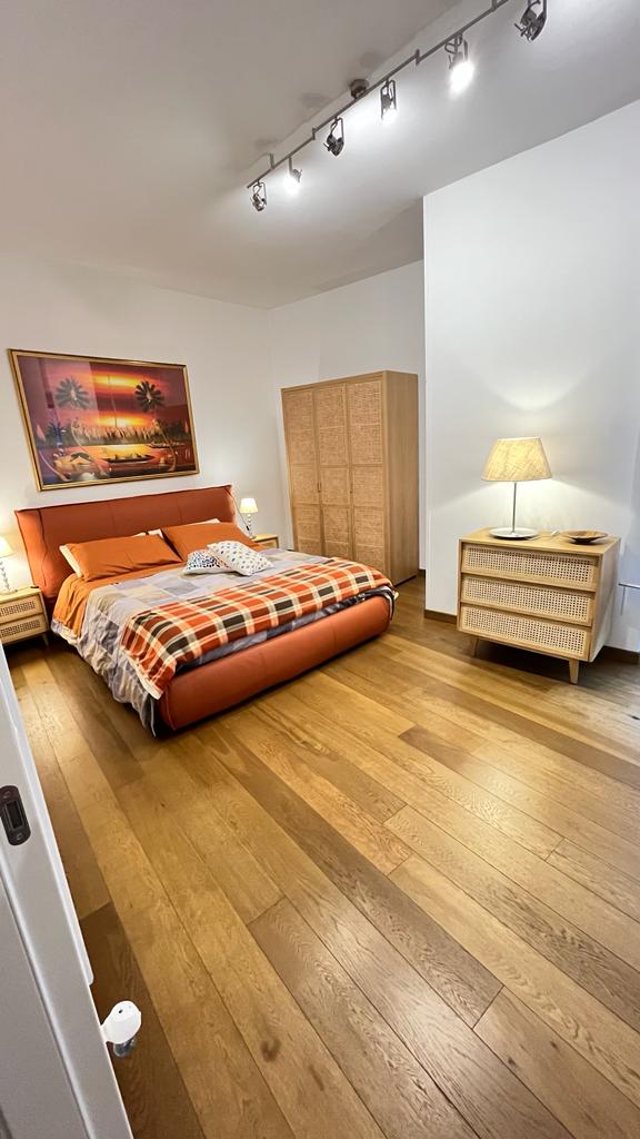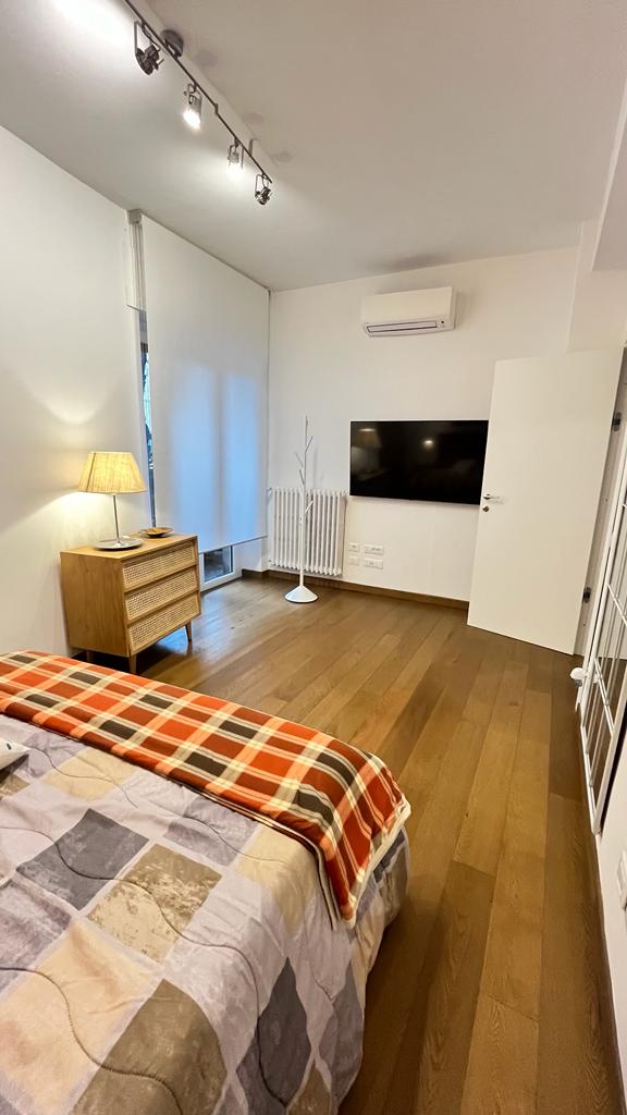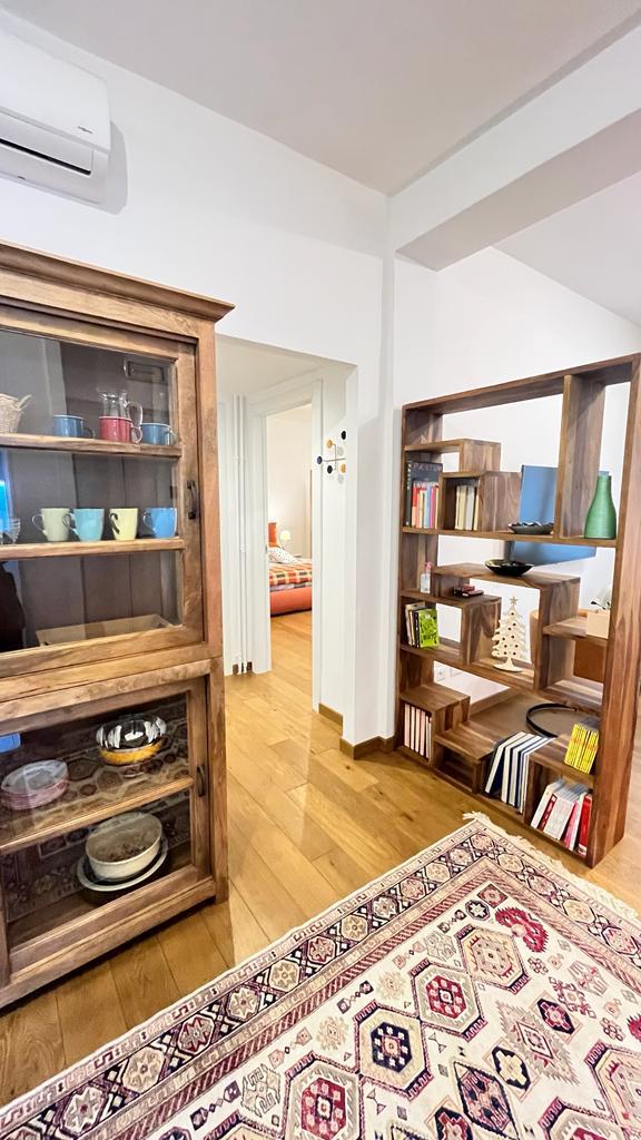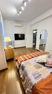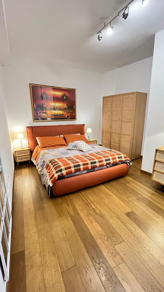 The flat is located in the heart of the African Quarter in a very commercial area full of shops, restaurants and characteristic places. The pharmacy is 50 metres away and within 100 metres there are several supermarkets, one of which is in front of the house. For transportation you will find at 50 mt the train station to Fiumicino Airport, at 200 mt the Metro Line B – Stop Libia. For those using a car there is a large pay car park 100 metres away. The house, located on the mezzanine floor in a tree-lined street, is elegant, equipped with every comfort, newly renovated with parquet flooring in all rooms. Furnished with fine materials in a modern and eclectic style, it consists of two bedrooms, a large living room, a designer kitchen complete with every appliance, a bathroom with shower, 2 smart TVs and a balcony. The flat’s location and proximity to amenities will make your stay unforgettable.